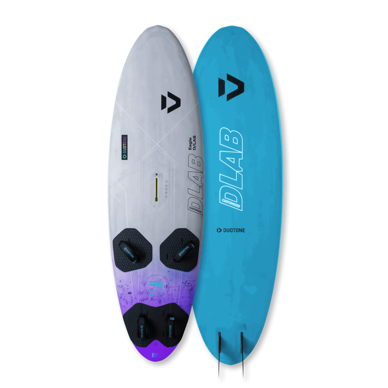 With the EAGLE and the brand-new BLITZ we offer 2 boards for the freeride >< freerace segment covering everything from learning to plain up to being the fastest sailor at your spot. Now imagine to combine this with the same high-end FULL CUSTOM D/LAB construction being used for the FALCON_FIN and there you have it: the EAGLE and BLITZ D/LAB CUSTOMIZED are the stiffest, lightest and earliest planing boards in their class. In fact they are over a kilo lighter than other comparable boards.EAGLE or BLITZ - which one is the right freeride>< Where it will take you1) EAGLE: IT’S ALL ABOUT PLANINGWhere you come from: you had your first Windsurfing experience and are capable of staying upwind. There is no other board which will help you to experience the gliding/planing sensation in such a short time than the EAGLE. Where it will take you: besides getting planing, jibing is the second strength of the EAGLE. But it’s not just made for learning to (power)jibe but will even accompany you up to freerace blasting and laydown jibing 2) BLITZ: MAXIMUM PERFORMANCE WITH MINIMUM EFFORTWhere you come from: you are comfortable of sailing in the foot straps then the BLITZ is your performance machine. Where it will take you: the BLITZ will instantly make you a faster sailor. Since it’s also very easy to jibe it will be your partner from your first power jibes up to pro level laydown race jibes. Partnered with a high performance fin and a freerace sail you might even become the fastest guy at your spot with the BLITZ, whilst still maintaining the comfort of a freeride board.The EAGLE was designed with the following objectives:> Super early (passive) planing> Automatic/instinctive jibing> Maximum wind range and control even in choppy conditions This makes the EAGLE the perfect intermediate to advanced board which will accompany you from your first planing attempts all the way through to blasting and laydown jibing. To achieve these characteristics the team around Dani Aeberli (Product Manager Boards) have developed the VOLUME YET CONTROL CONCEPT:The slightly longer and therefore less curved outline allows us to increase the volume by up to 30 litres compared to short-curved boards (e.g. Fanatic Gecko or Tabou Rocket) without any loss of control. The extra volume though results in a much more confident, predictable and relaxed riding position especially in underpowered or sub-planing conditions. >> This leads to an unbeatable, broad range of use.The slightly longer and therefore less curved outline also offers 2 additional important advantages:1) It prevents the board from turning unnecessarily into the wind which lets the Eagle get onto a plane almost automatically2) It prevents the board from bouncing around even in rough chop which becomes an issue with wide-curved boards The maneuver-oriented rail shape allows for an effortlessness and predictable jibing behavior as the thin rails require less pressure to initiate the turn. This is ideal for jibing novices or to increase your lay-down jibing success rate. Yet even for an advanced sailor the EAGLE is anything but a boring board to sail. It almost feels like a longer version of the BLITZ since it shares a very similar scoop-rocker line. Finally, the EAGLE D/LAB CUSTOMIZED can be ordered with a Single or Twinser fin box setup.Single fin setup: this presents the ideal compromise between performance and maneuverability. Also with a single fin, you'll be on the water in no time.Twinser fin setup: this is THE solution for any shallow water spot. Also the Twinser setup improves the maneuverability even further.YOUR NEW EAGLE D/LAB CUSTOMIZED DREAM MACHINES ARE READY AND WAITING FOR YOU TO GO BEYOND IMAGINATION!