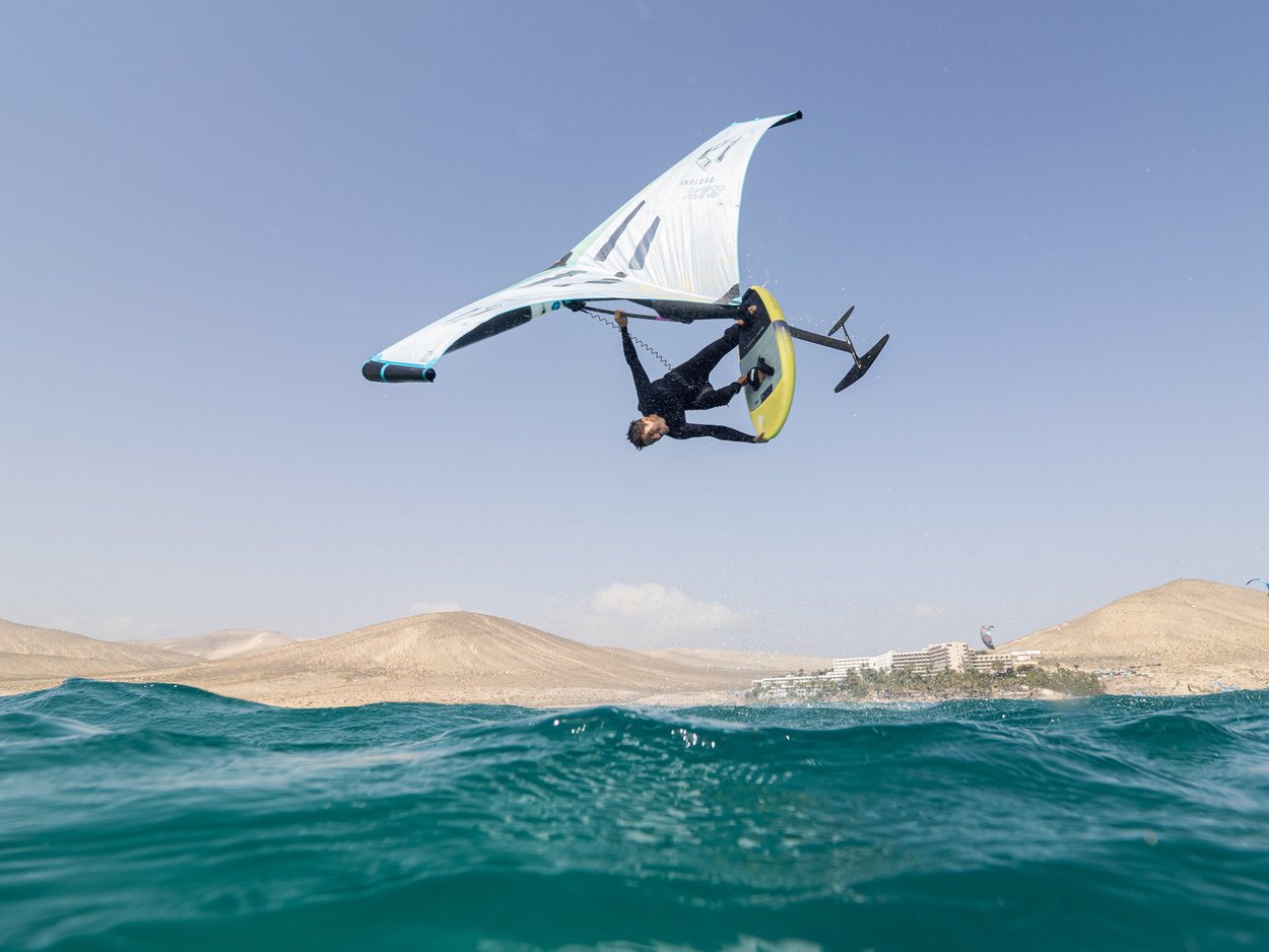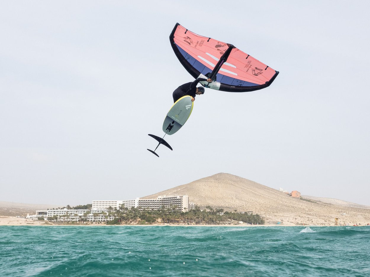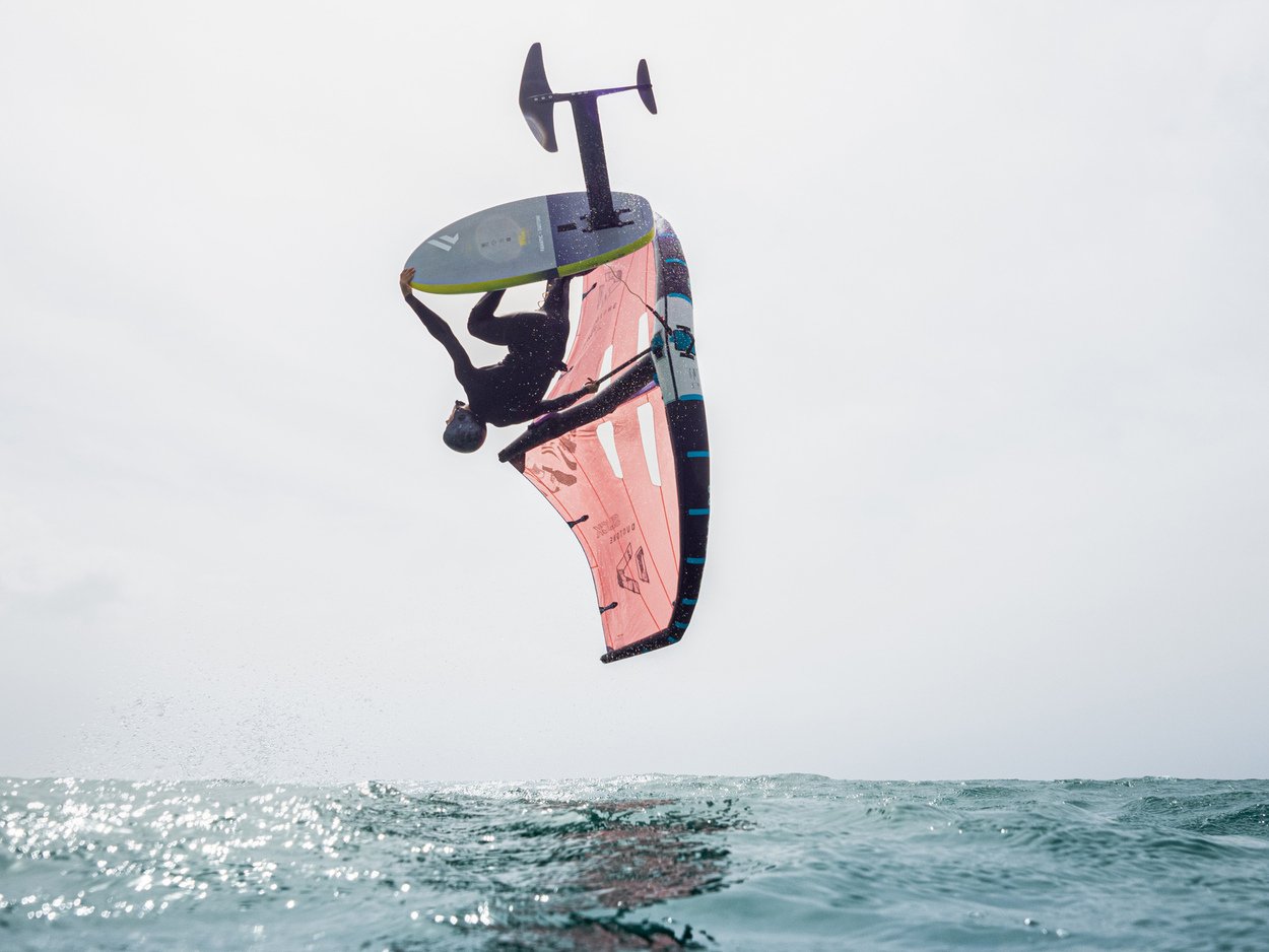 The Slick is our latest Freeride & Freestyle Wing featuring the Mini Boom - designed to enhance your flying experience with increased lift, power, and hang time. The Slick boasts exceptional stability and balance, allowing for a smooth ride through gusts and lulls. The new version of Duotone's Mini Boom Wing was crafted with a clear objective - to amplify power while expanding the wind range and increasing the sweet spot. Not only does it provide more lift for jumps and Freestyle tricks, but it also will have you flying on the foil with minimal pumping, making a huge difference in light winds and for less experienced riders. The MOD3 canopy makes a significant impact on the wing's performance, enhancing its grunt, low-end power, and direct response due to its low stretch characteristics. The higher modulus fabric and construction details ensure that the Slick’s shape and profile remain, even in strong gusts, resulting in rapid acceleration without the need for hand placement or riding position adjustments. Furthermore, the MOD3 canopy improves the wing's longevity and durability. The deeper profile enhances the lift and makes for a smoother power delivery and provides a forgiving ride feel making it easy and intuitive for riders with varying experience and different wind conditions. This feature enhances the learning curve for beginners, enabling them to master the basics quickly. Additionally, the constant and predictable pull makes it easier to execute freestyle tricks and rotational jumps with ease. The Slick's refined strut flex and wing tip angles ensure consistent power delivery and a smooth and consistent ride through gusts. Two well-placed windows on each side of the wing provide good visibility, so you never have a blind spot, without compromising the wing's lightweight feel. With three Mini Boom options, from the Aluminum Silver, to the Platinum and Platinum SLS in Carbon, there’s an ideal option for every rider. The Slick Mini Boom is also backwards-compatible with our previous generation of Slick Wings. The 2023 Slick flags out and steers exceptionally effortless when held by the refined front handle and remains neutral and balanced in the surf or when going downwind. That being said - the Slicks infinite options in hand placement make it the ideal choice for both Freestylers and Freeriders alike. It offers unrivaled benefits and rapid progression for those learning maneuvers and tricks.