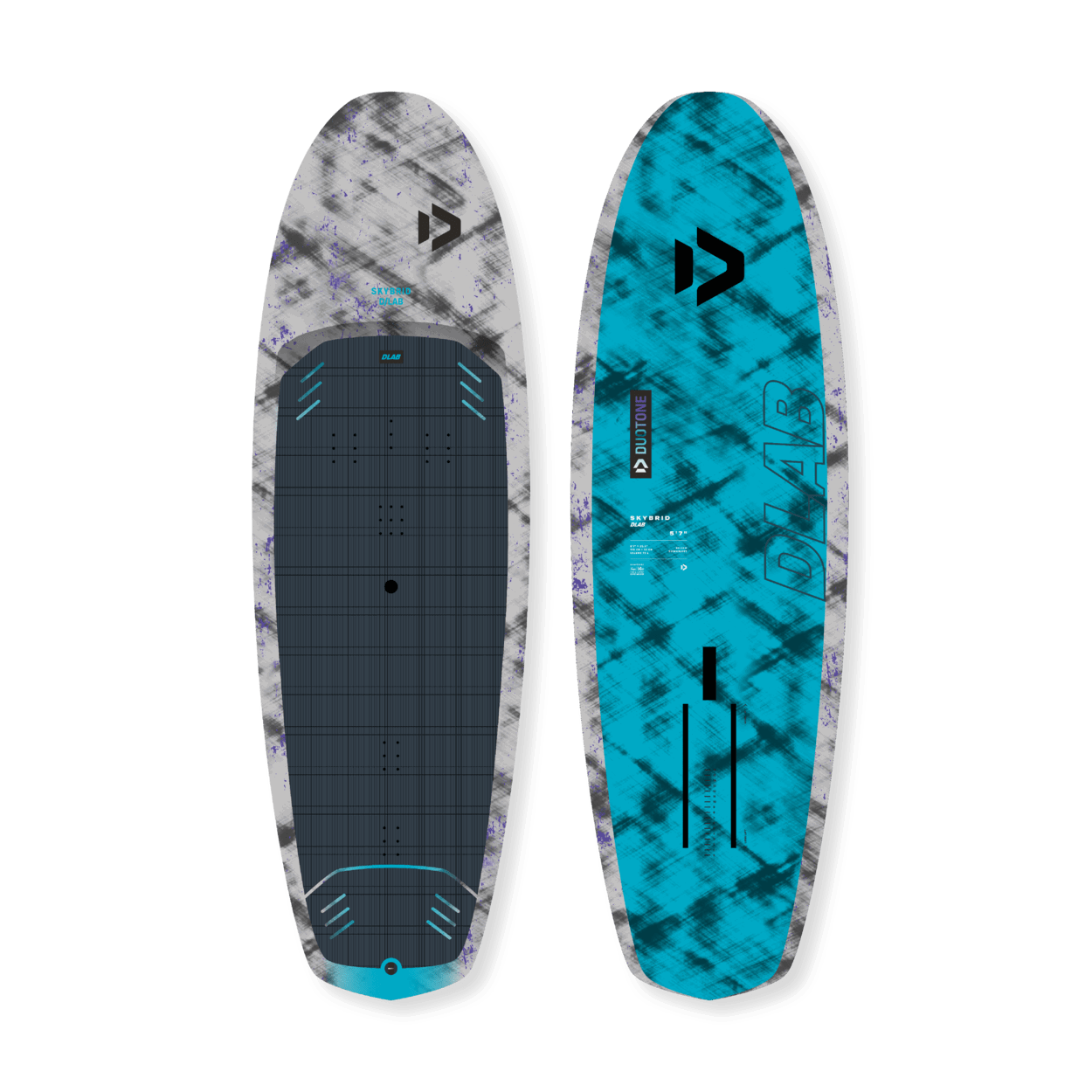 This innovative ultra-light, rigid build sets a new benchmark in performance across freeride, freefly, and parawing disciplines. Thanks to its Hollow Shell Composite construction, the Skybrid D/LAB weighs over 30% less than its SLS counterpart. The result is the lowest swing weight possible, delivering a sensation closer to that of a prone board, while maintaining the volume and buoyancy needed for versatile performance.The board retains the proven Skybrid SLS shape, with a slightly longer and narrower outline for superior glide and early take-off. A new diamond tail, paired with a wide and stable deck and pronounced rail bevels, enhances clearance and turning agility, delivering smooth, stable transitions in every session.A recessed deck provides a direct connection to the foil, maximizing control and responsiveness. Extended carbon foil tracks offer expansive trim range for a variety of foil setups, while an integrated air vent and drain plug allow for pressure release and optimal storage care.Available in 5'7" x 20.5" (70L), the Skybrid D/LAB is designed for riders looking for the highest level of innovation and are ready to push the boundaries in lightwind freeride, dynamic freefly, small wave riding, or downwind parawinging.Experience the pinnacle of foiling innovation with the Skybrid D/LAB – where cutting-edge construction meets elevated performance in every ride.