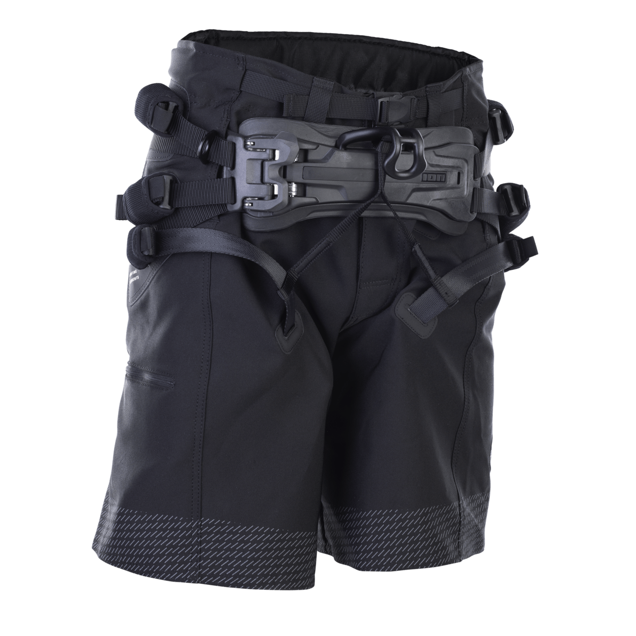 B2 integrates the style and function of boardshorts into a kite seat harness. The ergonomic leg straps, inspired by the technology of climbing harnesses, have been developed to enable freedom of movement without pressure points. ION's sleek Spectre Bar (incl. kite hook) and C30 buckles complete the ultra-lightweight harness. The detachable Downforce_Loop connects the leg straps to the spreader bar and prevents the hook from twisting up. Spectre wing pockets provide smooth and seamless integration of the spreader bar flaps into the harness for a snug and secure fit. Comes with ION's Spectre Bar (including kite hook) and integrated Kite_knife multitool.