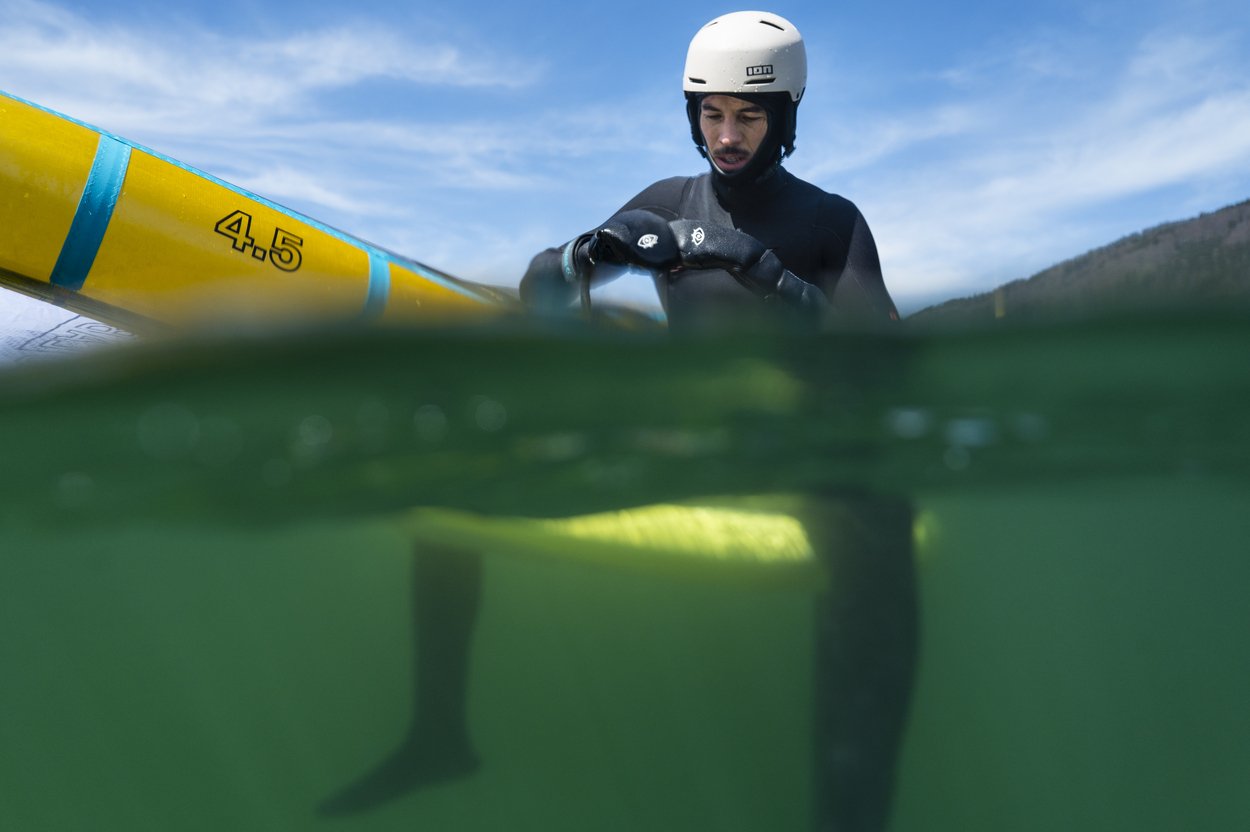 The Hybrid Gloves are the newcomers in ION's glove range. Targeted towards kiting, windsurfing and winging, these gloves offer you protection from windchill whilst offering direct feeling of the bar, boom and handles when you want it. As the term hybrid implies, the choice is up to you. Riders can choose to either pull the neoprene cover over their freezing fingers or simply leave it in the compartment. The shere finger cover offers a 1mm thick isolation with the option of pulling the 2.5 neoprene cover of the hand. The Gloves are water repellent and feature a velcro closure. Recommended for air/water temperatures from 10-15 °C.